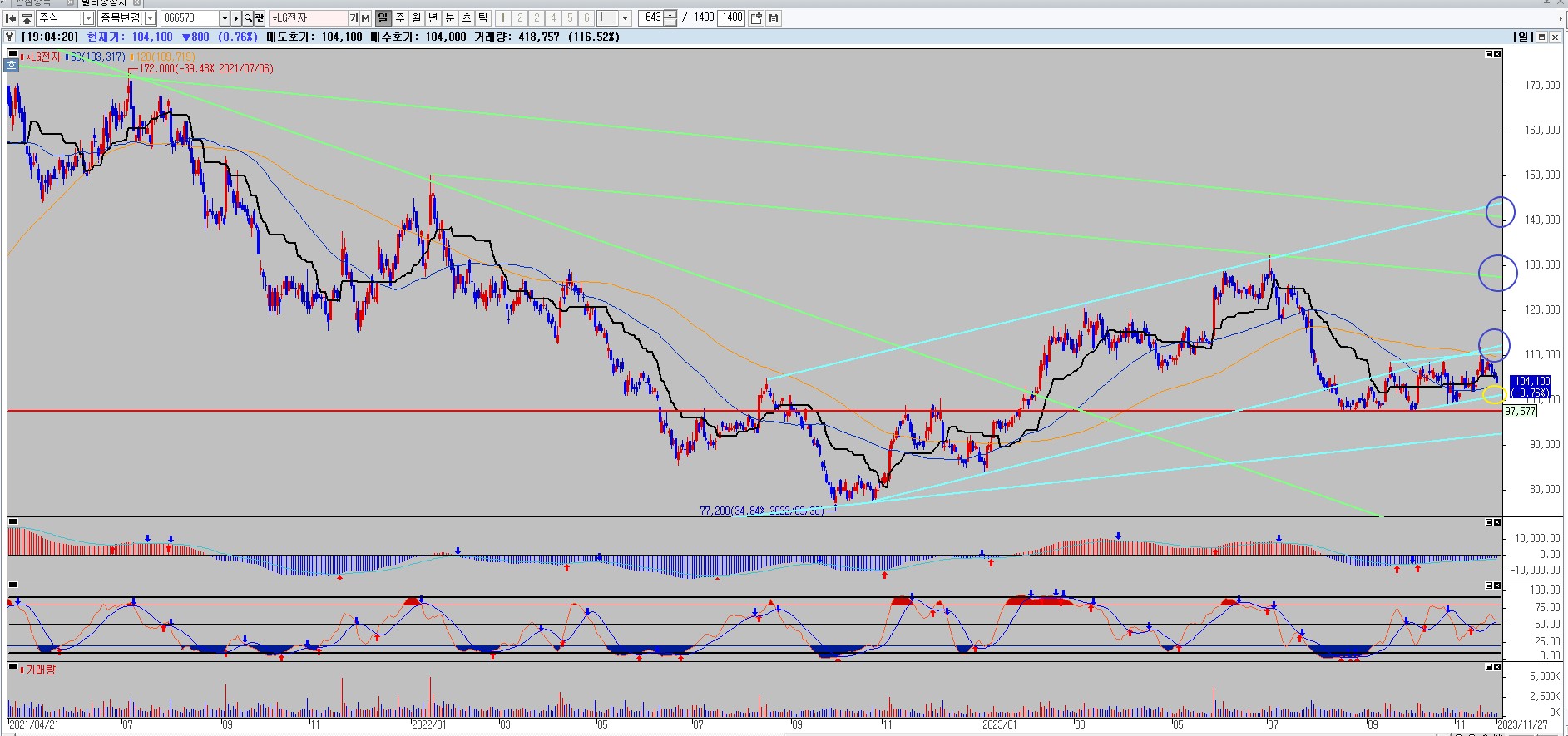 1차적으로 매수를 할 수 있는 주가이고, 11월27일 종가 104100원