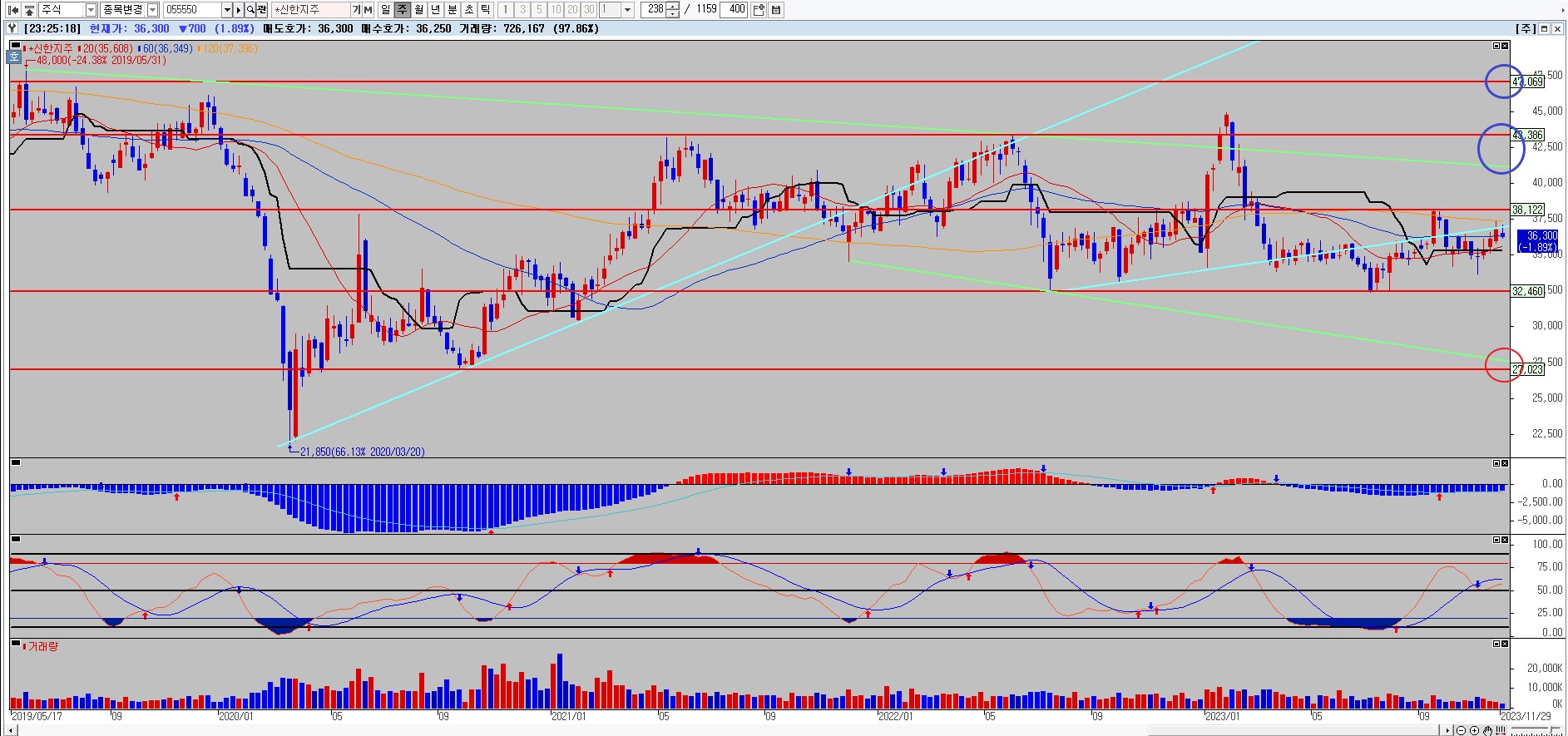 신한지주 월봉차트 차트분석