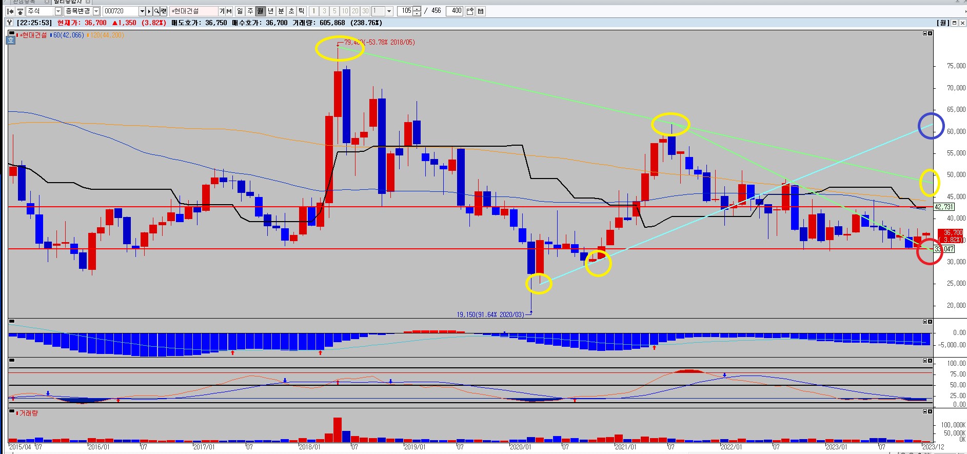 현대건설 월봉차트 차트분석