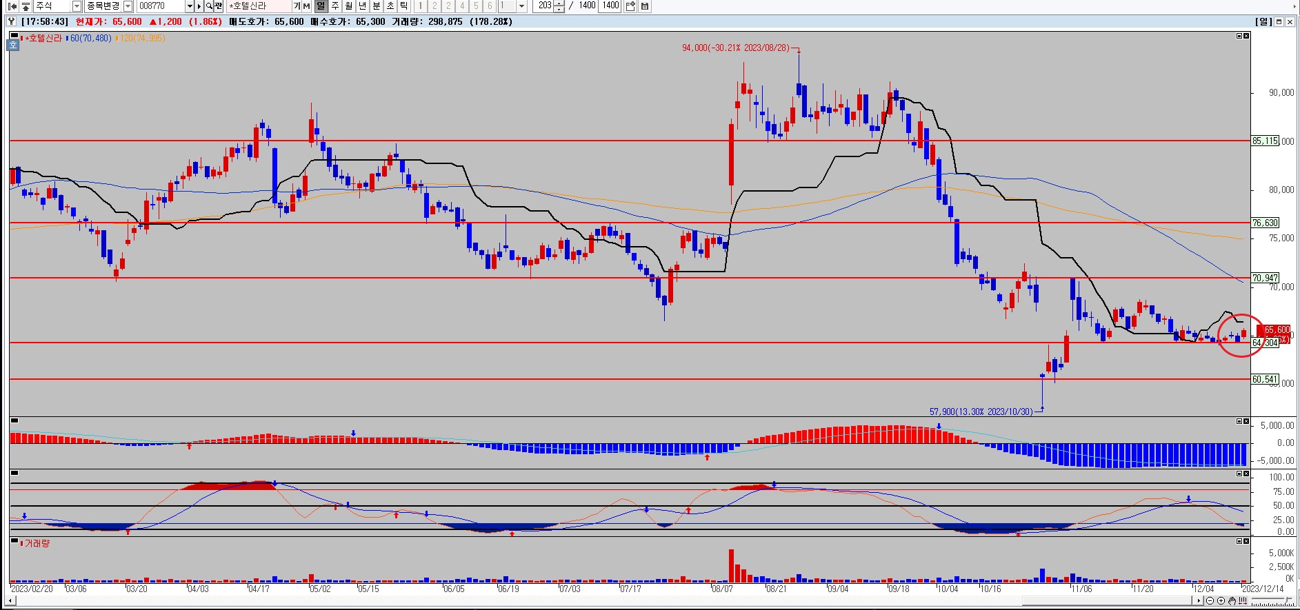 호텔신라 일봉차트 차트분석