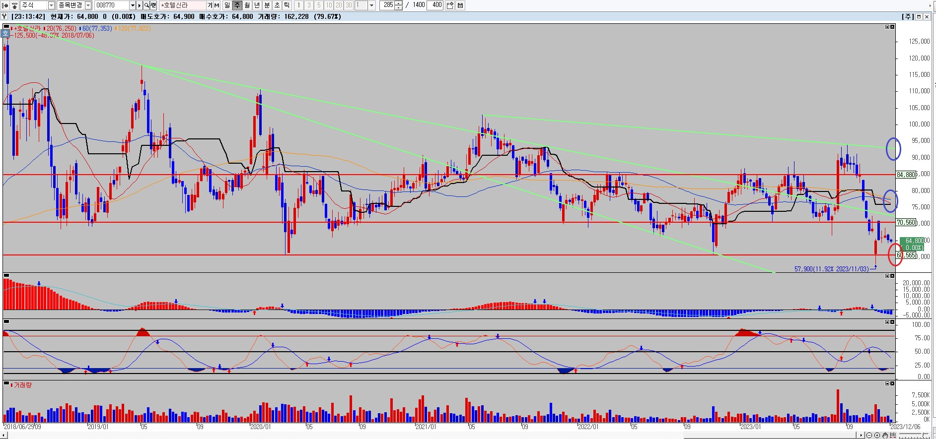 호텔신라 주봉차트 차트분석