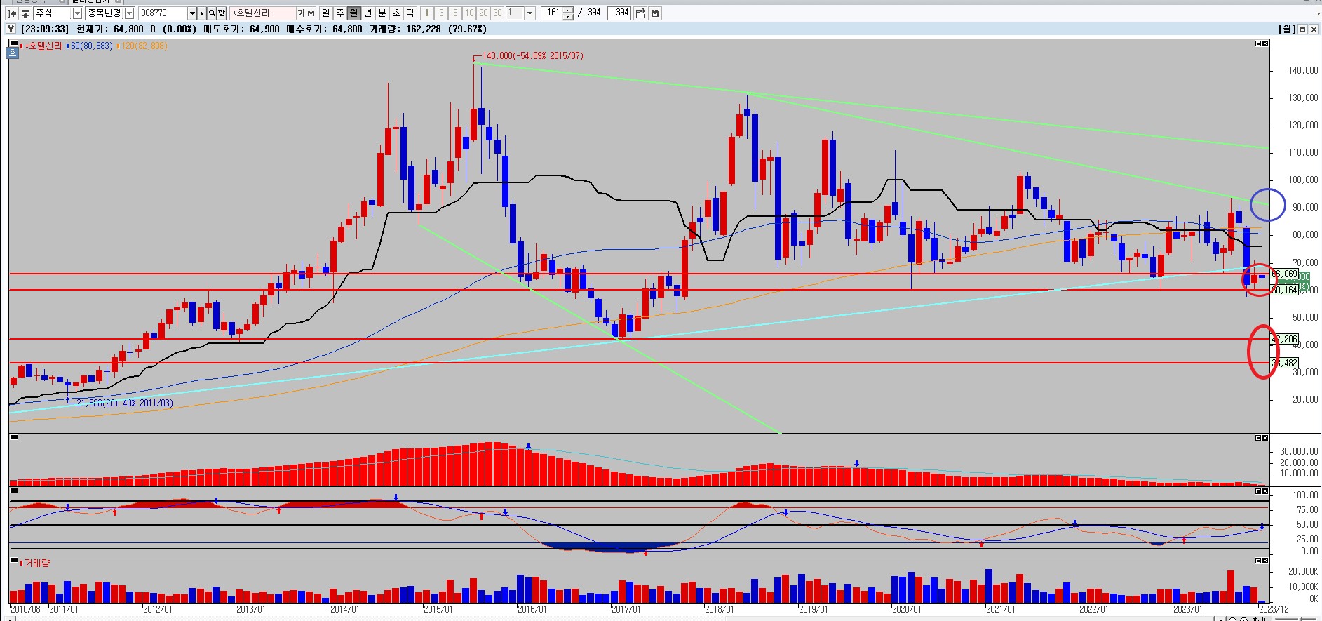 아래쪽으로 더 내려왔을때 지지라인 60000원대가