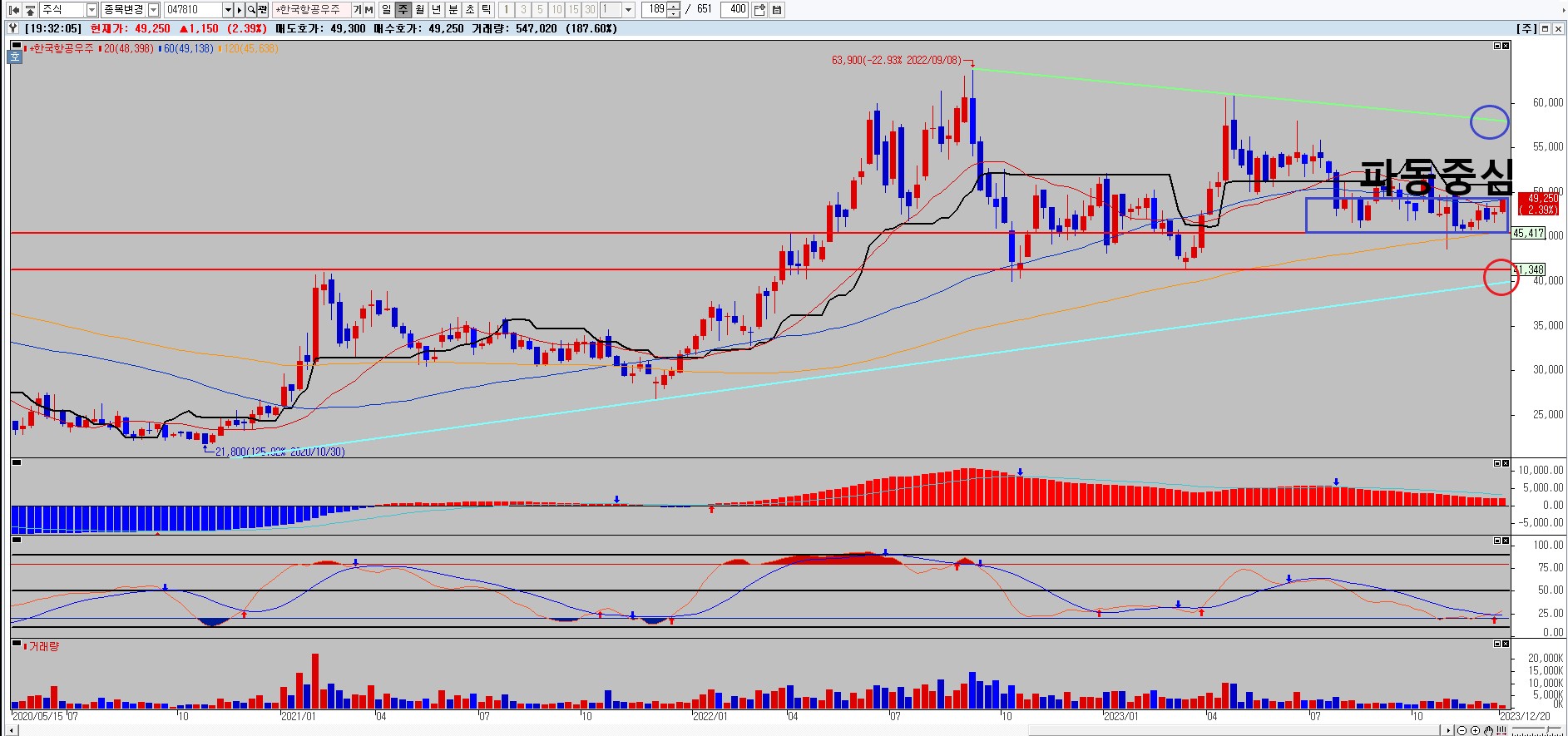한국항공우주 주봉차트 차트분석