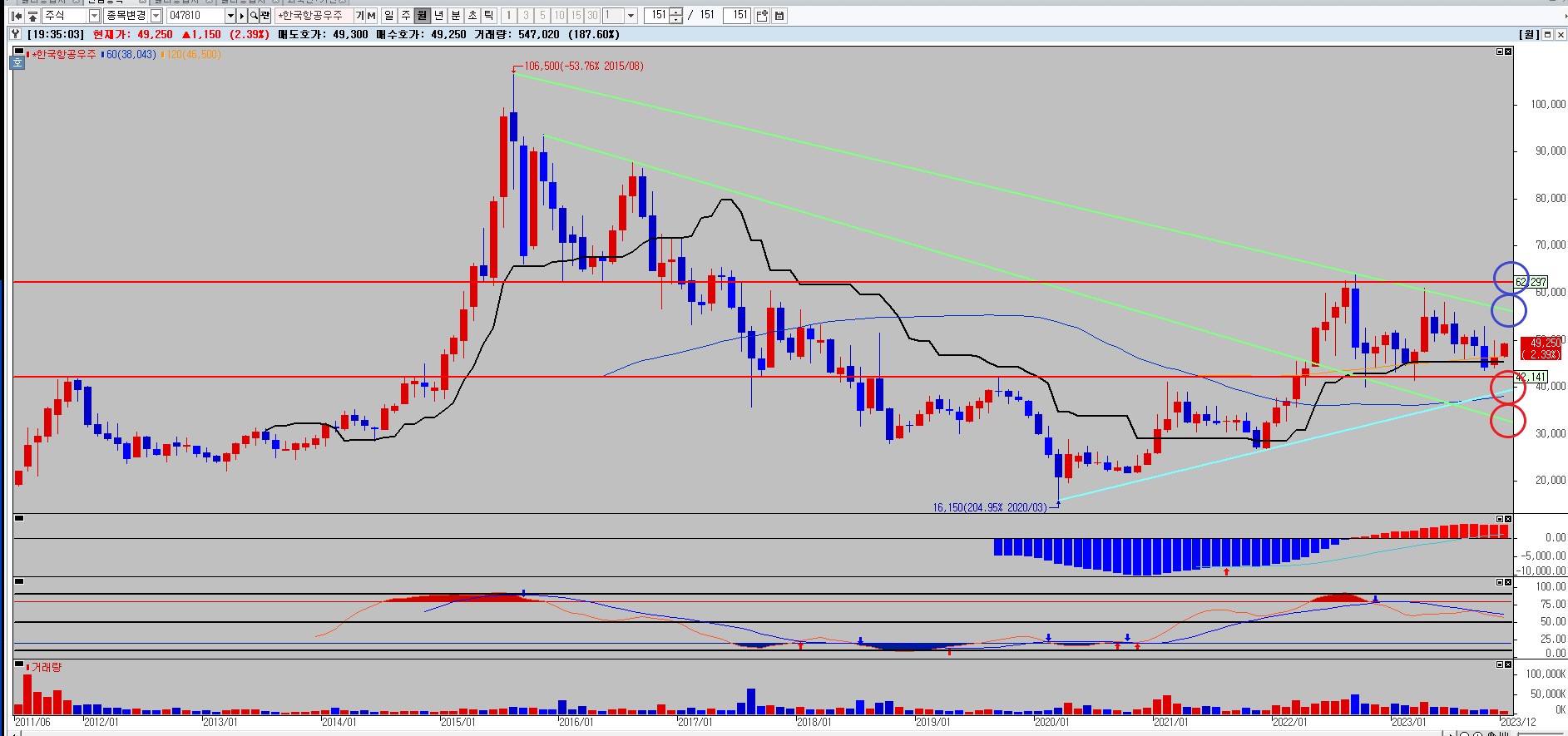 한국항공우주 월봉차트 차트분석