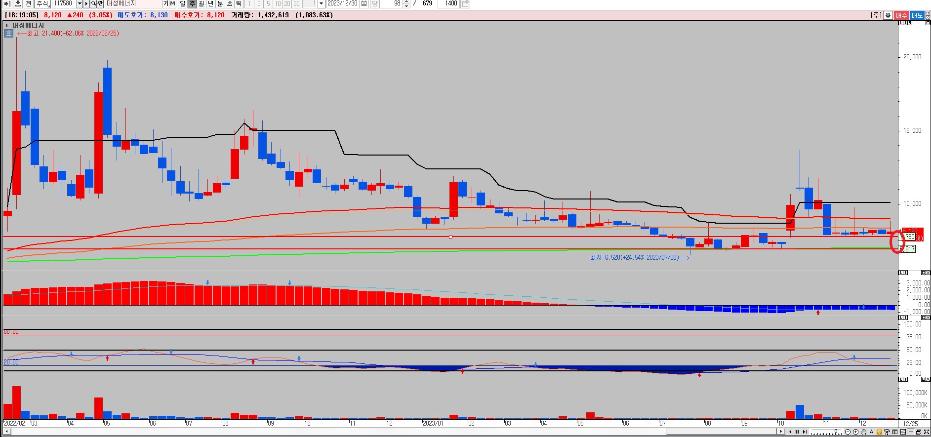주가도 추세 하단에 위치하고, 파동도 하단입니다.