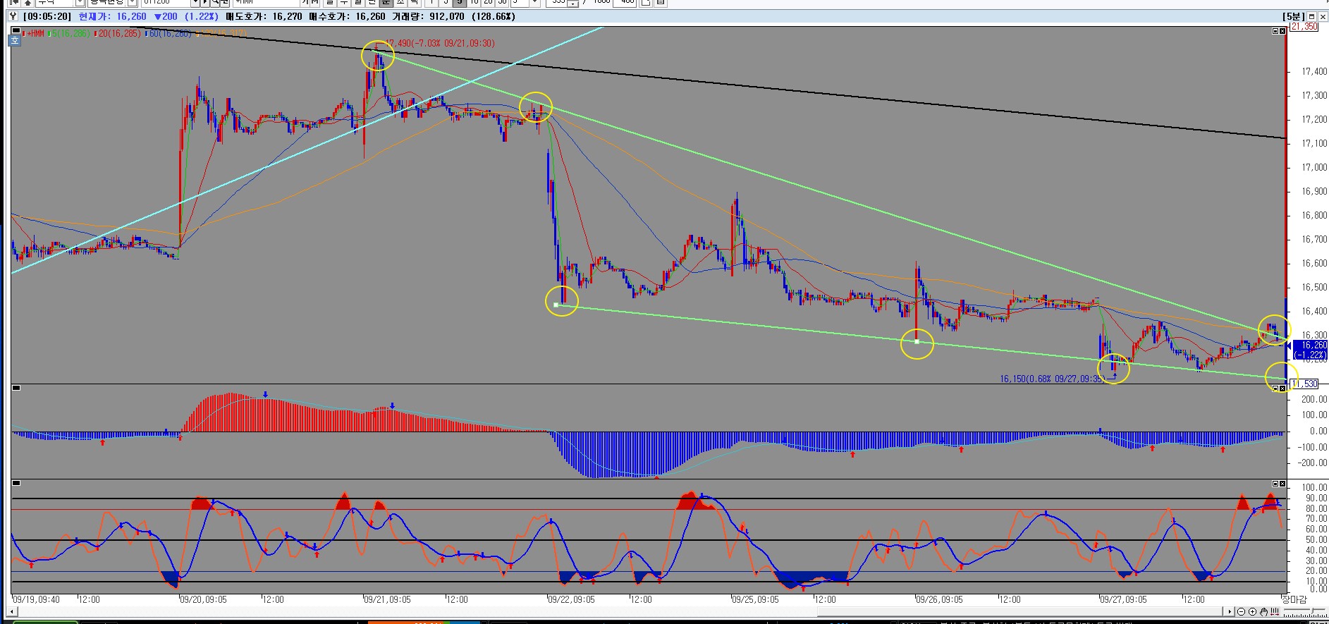 5분봉같이 추세를 돌파했던 부분이 진짜면 상승에서 시작이 될겁니다