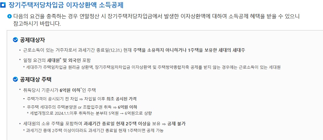 2025년부터 장기주택저당차입금 이자상환에 대해 최대 2000만 원까지 소득공제 혜택이 제공됩니다.