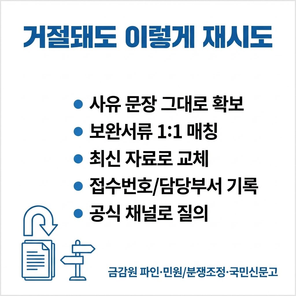3) 거절되어도 끝이 아니라, 사유 확보 → 보완 → 재요청 루트가 있습니다.