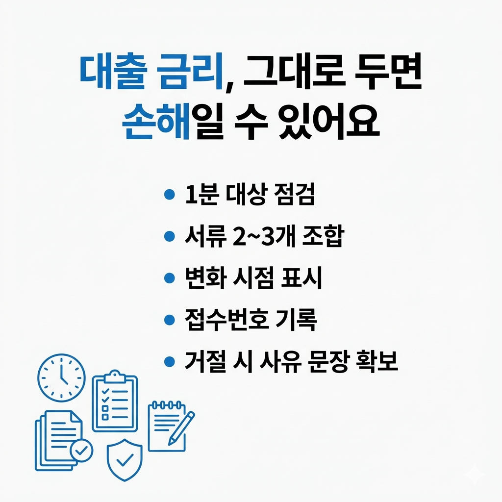 - 40대 이상(대출 규모 큰 경우): “금리 구성 요소”를 먼저 파악하고, 조정 가능 지점을 중심으로 요청서 작성