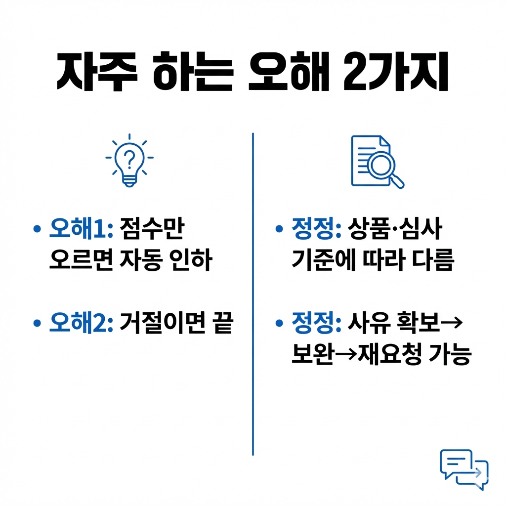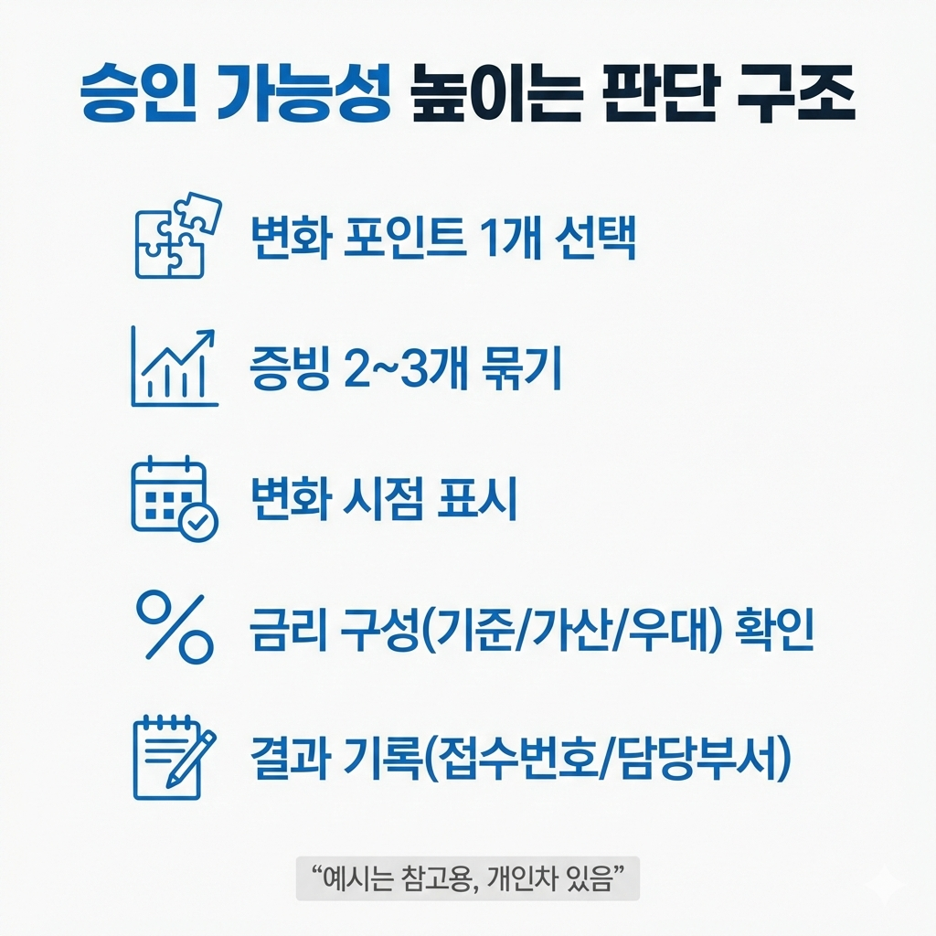 2) 승인 여부는 개인·상품·내부 심사 기준에 따라 달라질 수 있어, 서류 설계가 중요합니다.