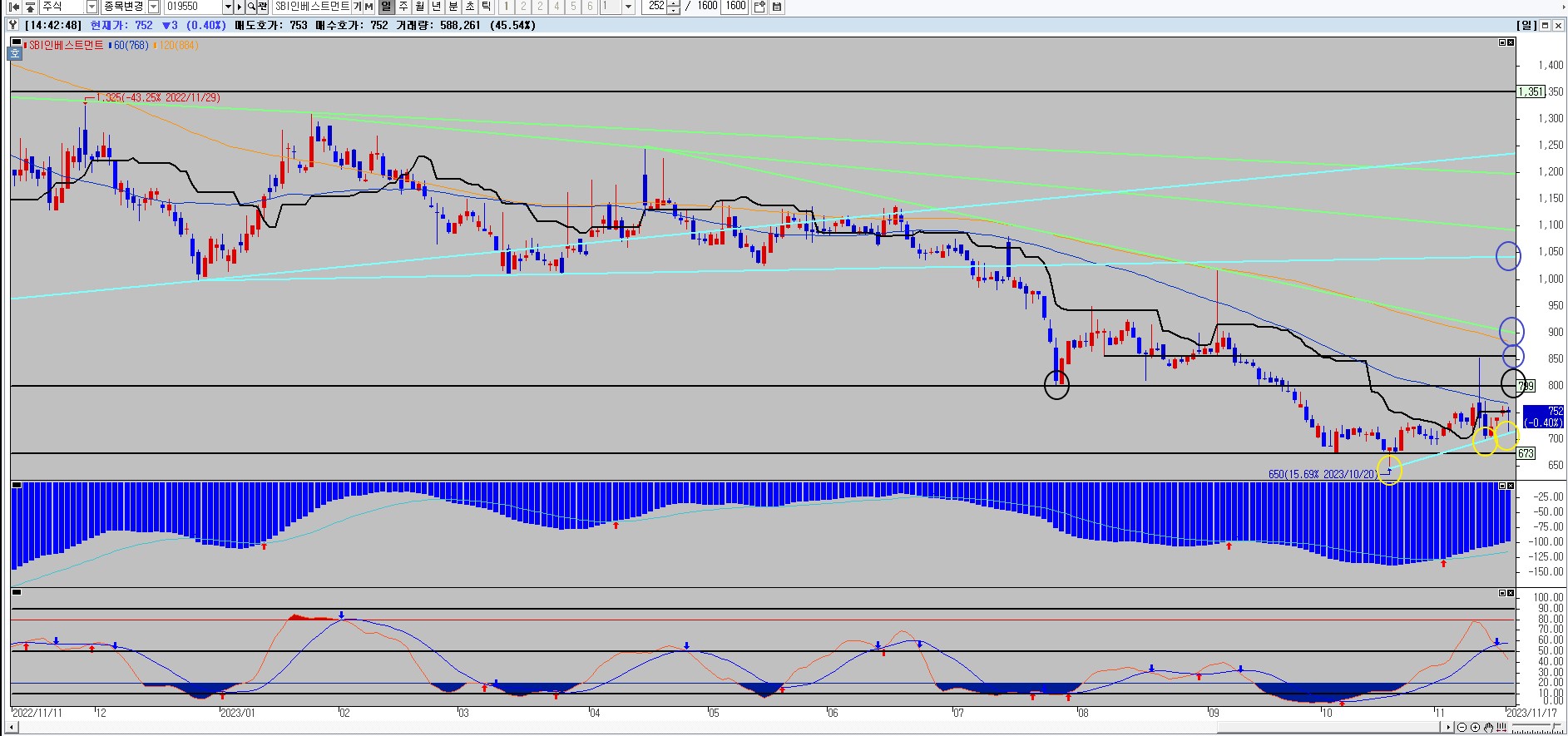 추세저항 아래쪽으로 800원 저점 저항이 있지만